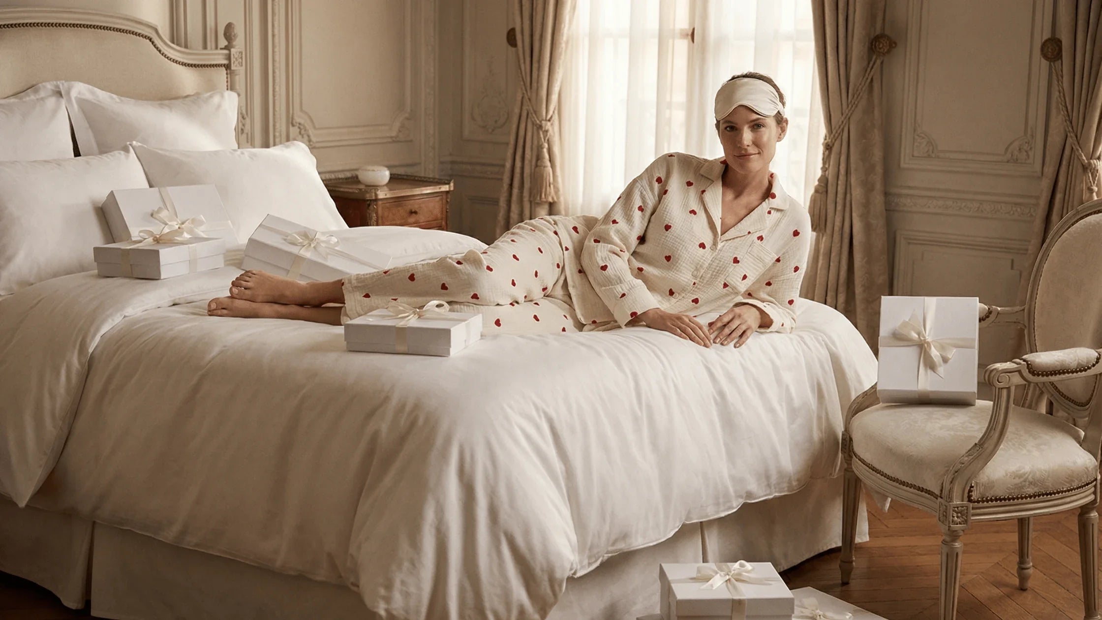 Designed in Paris and produced in small batches, our collections of pyjamas and loungewear blend soft cotton, delicate prints and thoughtfully tailored cuts made for real bodies. Every piece is designed to move with you, not against you – to flatter without feeling like a costume, and to stay comfortable from your first coffee of the morning to the last episode at night.